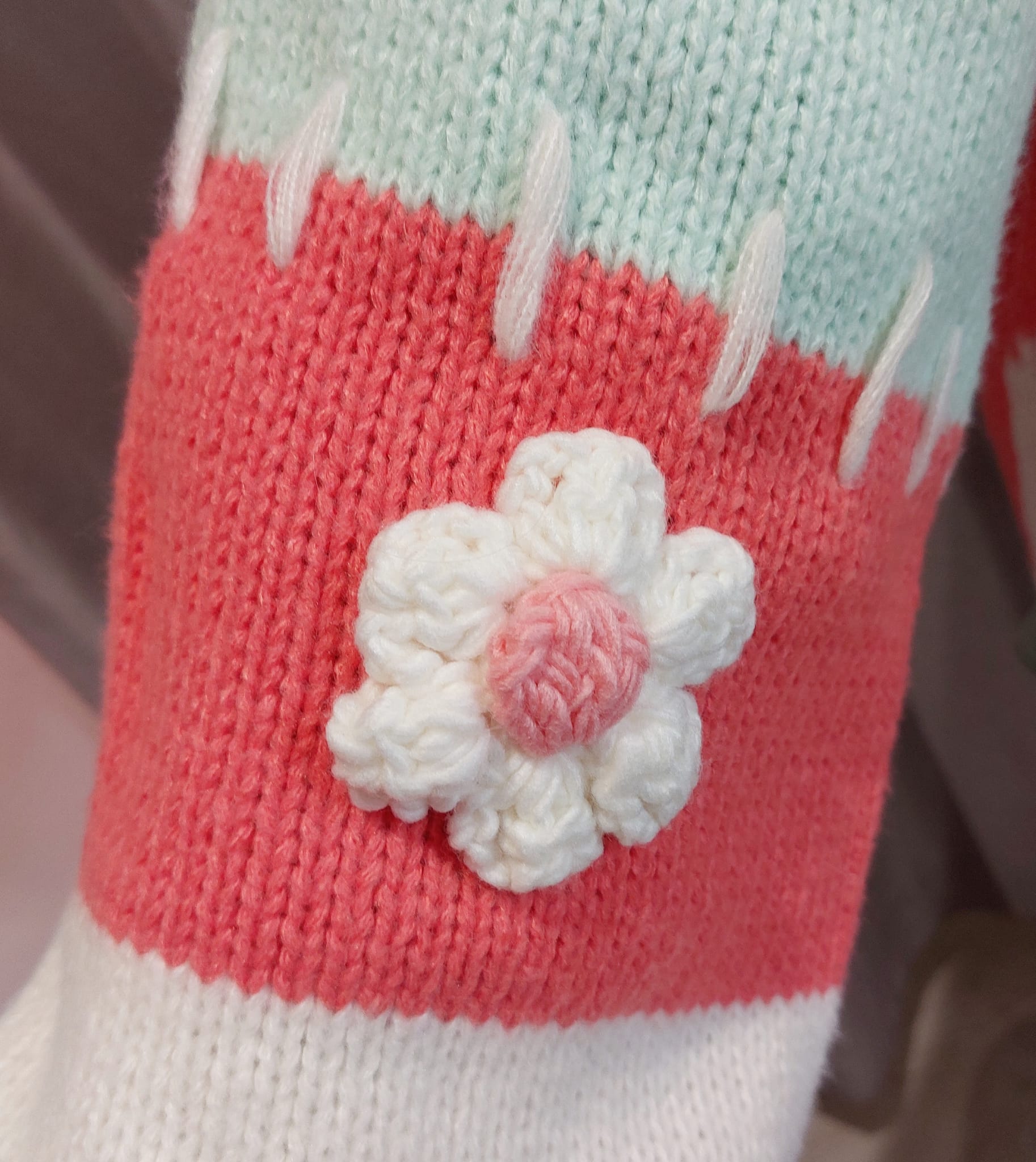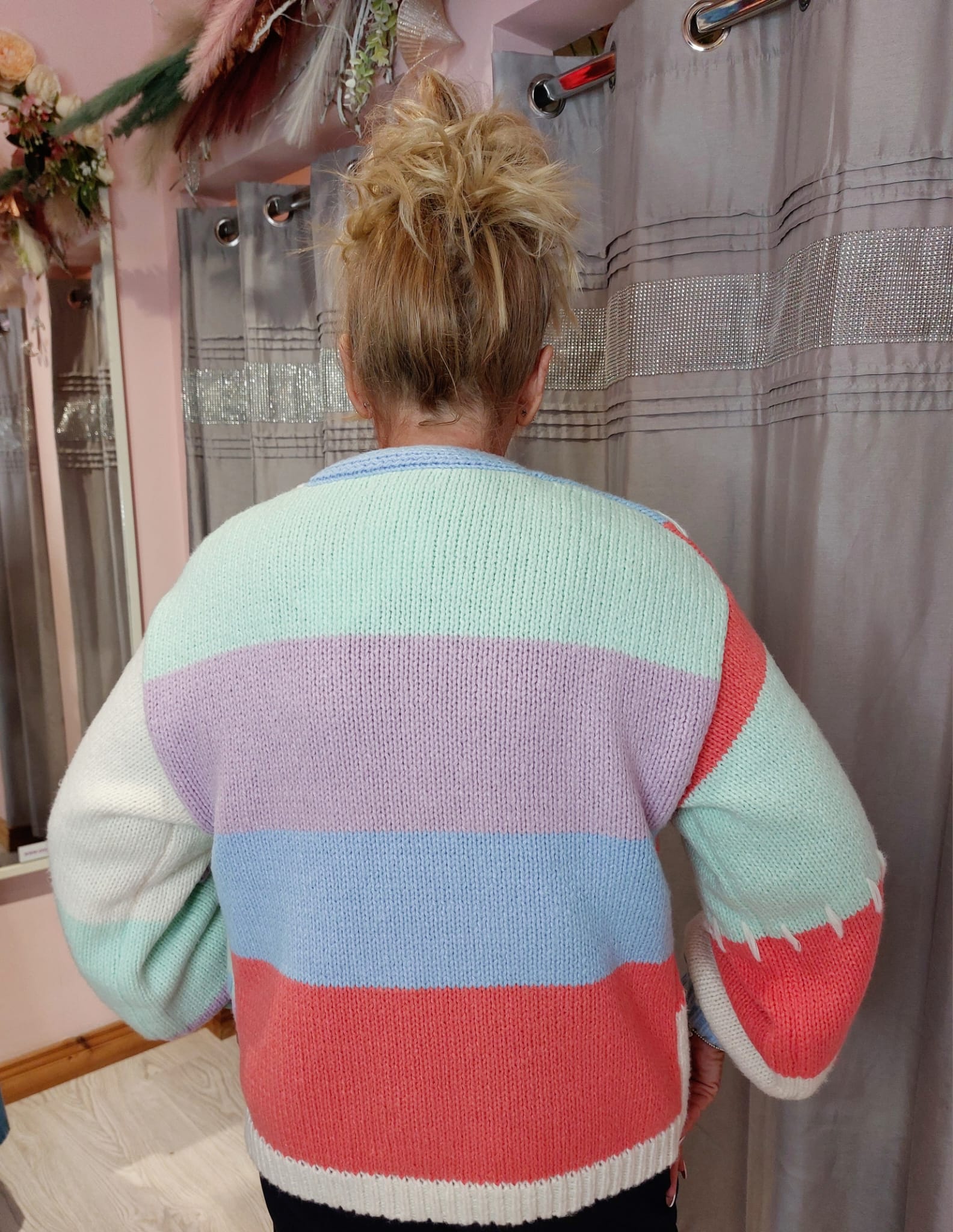 Make every outfit bloom with this chunky multicoloured knitted cardigan, beautifully finished with hand-embellished knitted flowers. Designed in an elegant edge-to-edge style (no buttons or fastenings), it drapes effortlessly for a relaxed yet eye-catching look.