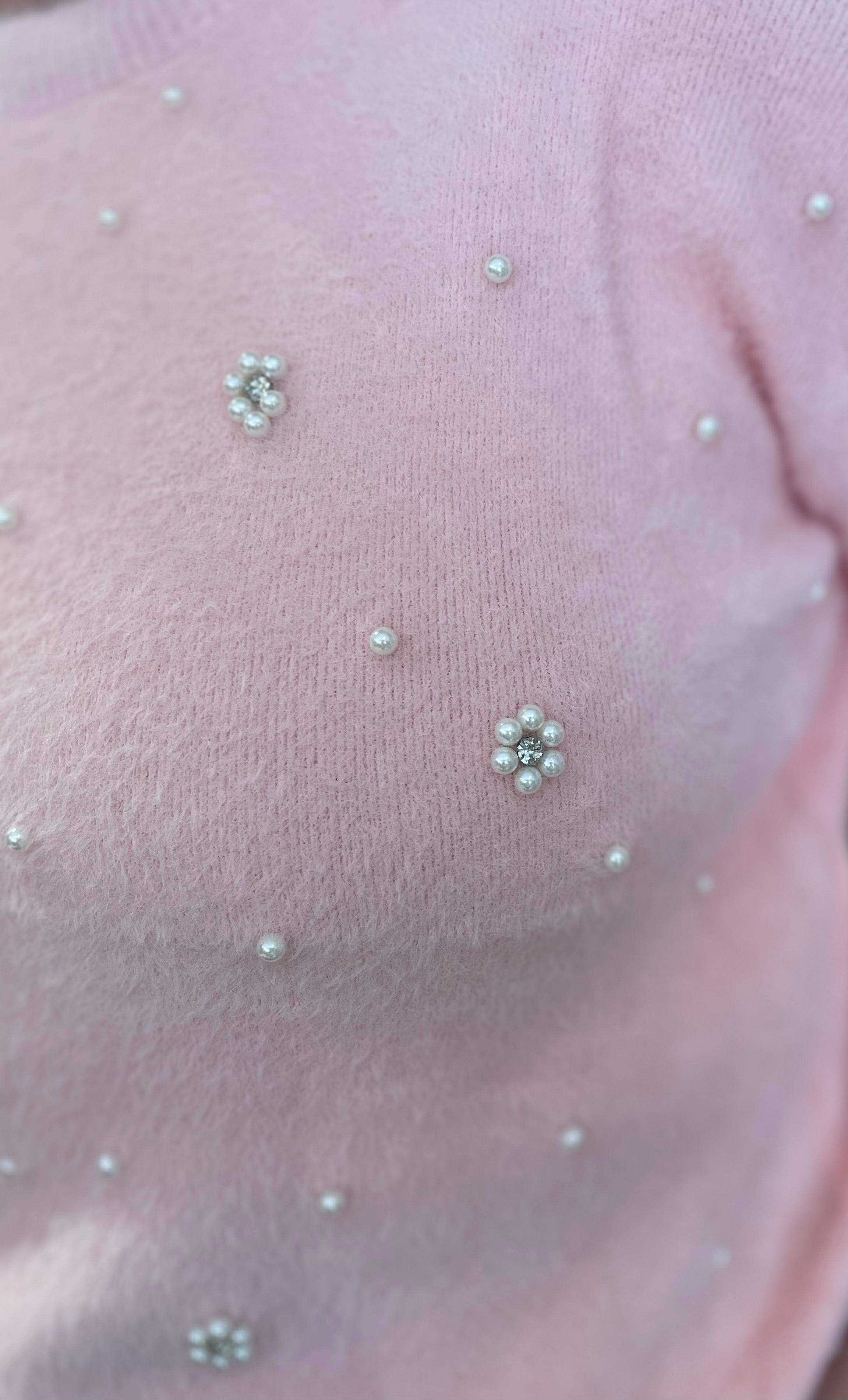 Wrap yourself in effortless elegance with this Cosy Knit Sweater, designed for the new season with timeless appeal. Crafted from a soft, warm knit, the classic round neckline is delicately elevated with pearl embellishments, adding subtle sparkle and sophistication to a cosy everyday piece.
