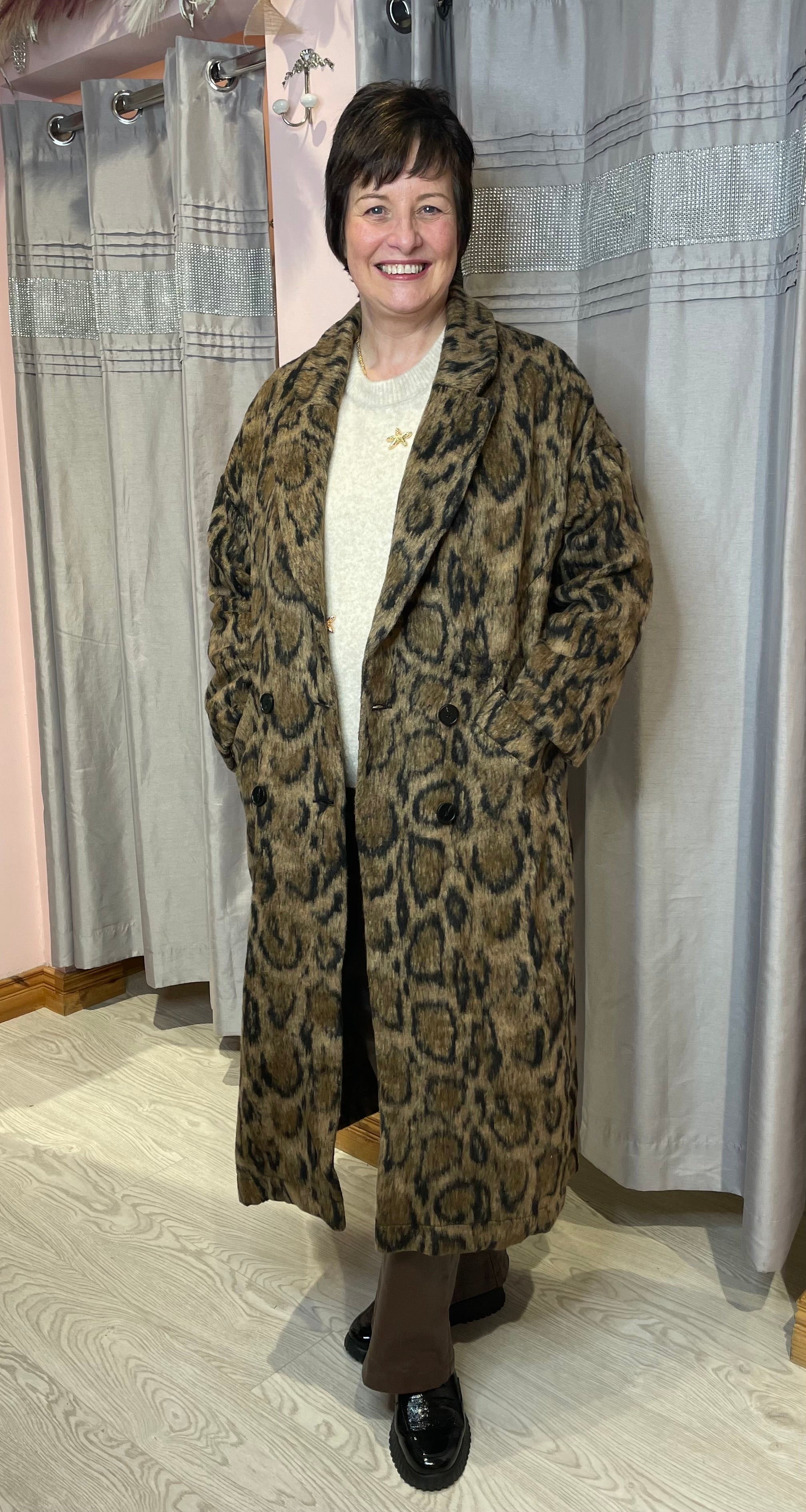 The striking leopard pattern adds instant personality to any outfit, while the longline cut ensures coverage and warmth. Layer it over casual denim or dress it up with a knit dress and boots—this coat is your versatile wardrobe powerhouse.