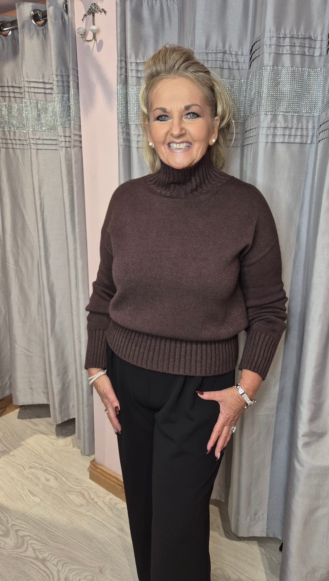 Elevate your wardrobe with this timeless high-neck jumper, crafted to deliver both comfort and style. The sculpted high collar gently frames the face while offering extra warmth, making it the perfect go-to piece for cooler days. Its refined ribbed knit gives structure and movement so that it fits beautifully whether tucked or worn loose.